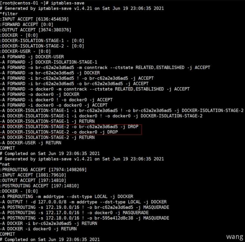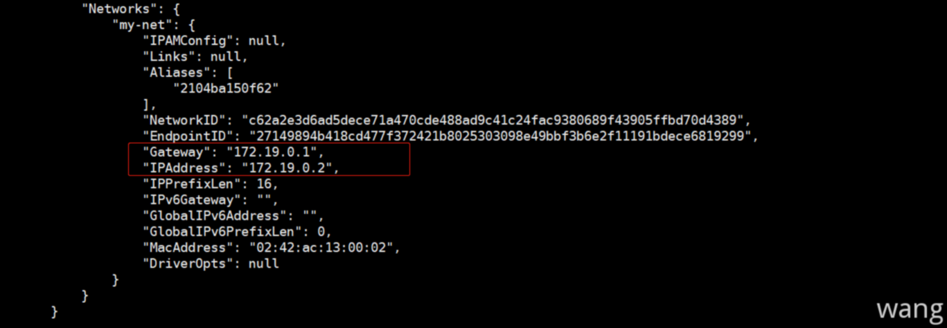 ]这里 172.19.0.0/16 是 Docker 自动分配的IP网段,网关为 172.19.0.1 ,在 my-net 对应的网桥br-c62a2e3d6ad5上