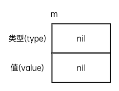 var m Mover此时,接口变量m是接口类型的零值,也就是它的类型和值部分都是nil,就如下图所示。