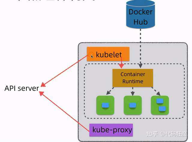 - kubelet:相当于 Master 派到 node 节点代表,管理本机容器,上报数据给 API Server
