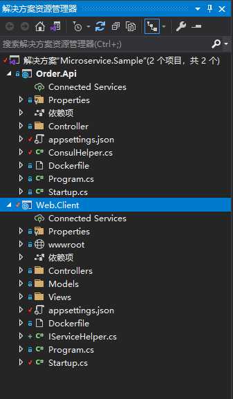 Order.Api:订单服务Web.Client:测试使用的客户端