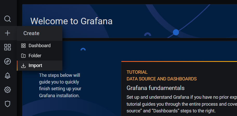 Grafana首页 => 左上角图标 => Dashboard => Import