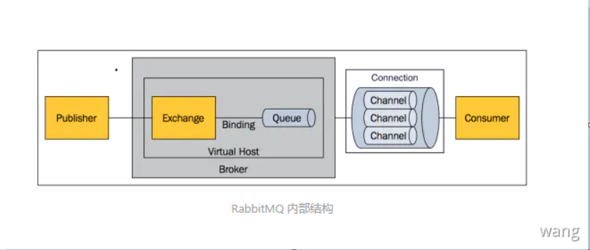 AMQP中增加了Exchange 和 Binding 的角色。生产者把消息发布到 Exchange 上,消息最终到达队列并被消费者接收,而Binding决定交换器的消息应该发送到哪个队列。