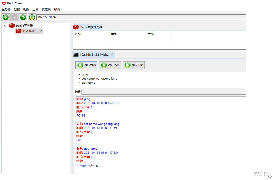 [root@wangpengliang bin]# ./Redis-server conf/Redis.conf主机中使用 RedisClient 连接